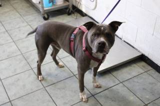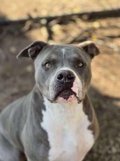 I am a male Pit Bull dog. I came to the shelter because I ran away. I arrived at the shelter on October 13, 2025, in fair condition. The friendly shelter staff says I am medium sized and I am blue and white. I am no longer at the shelter.