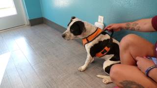 I am a male Pit Bull dog. I came to the shelter but I'm not sure why. I arrived at the shelter on October 15, 2025, in good condition. The friendly shelter staff says I am medium sized and I am black and white. .
