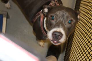 I am a female Pit Bull dog. I came to the shelter for quarantine. I arrived at the shelter on October 25, 2025, in fair condition. The friendly shelter staff says I am medium sized and I am blue and white. I am no longer at the shelter because I was returned to my owner!