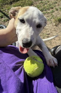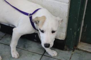 I am a female Terrier dog. I came to the shelter but I'm not sure why. I arrived at the shelter on December 17, 2025, in fair condition. The friendly shelter staff says I am medium sized and I am tan and white. I am no longer at the shelter because I was rescued!