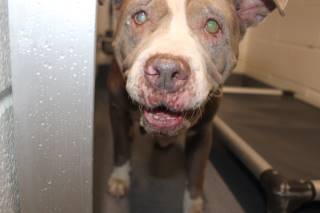 I am a female Pit Bull dog. I came to the shelter but I'm not sure why. I arrived at the shelter on March 31, 2026, in fair condition. The friendly shelter staff says I am medium sized and I am blue and white. .